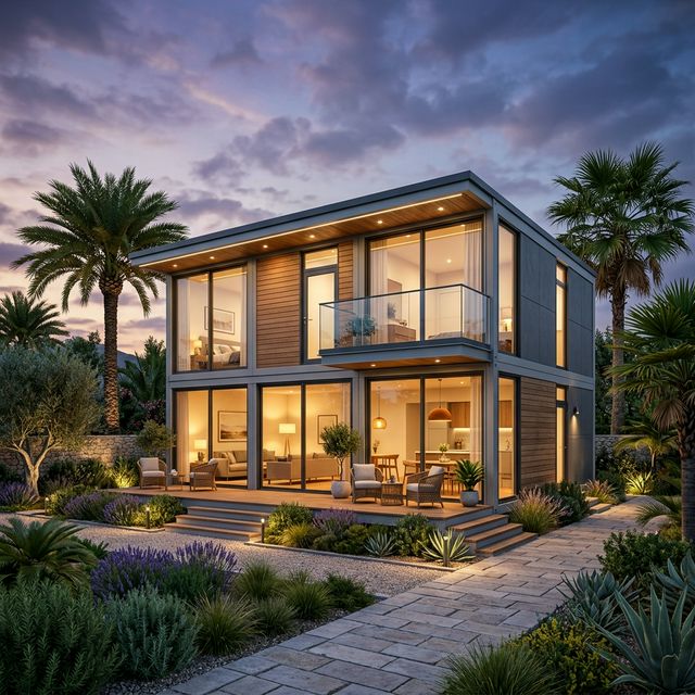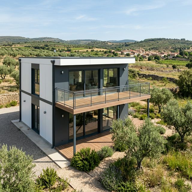 Casa modular ampliable de acero galvanizado Z275. Desde 45 m² hasta 180 m² en configuración de 1 o 2 plantas. Montaje en 5-10 días. Garantía estructural de 25 años. Precio llave en mano desde 700 €/m².