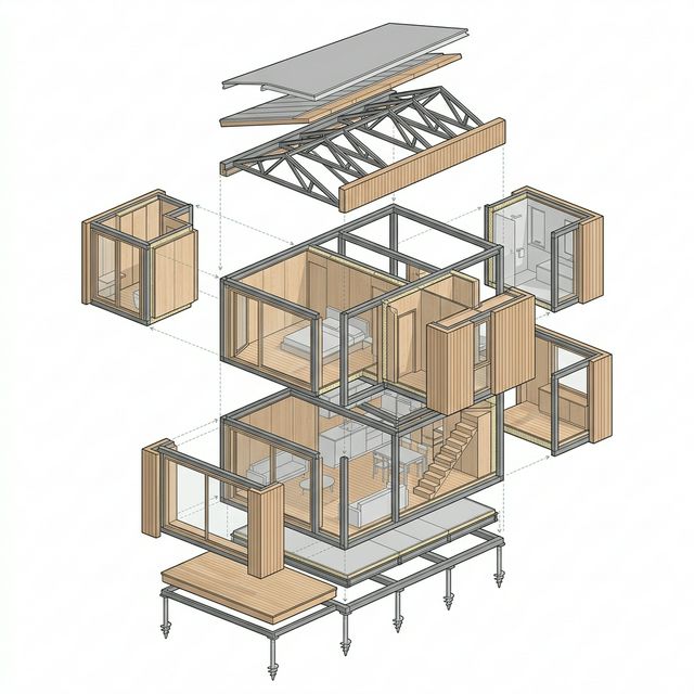 El precio incluye: proyecto básico de ingeniería, fabricación de módulos, transporte (hasta 200 km), montaje, cerramientos, carpintería exterior, instalaciones básicas y acabado interior en calidad estándar.