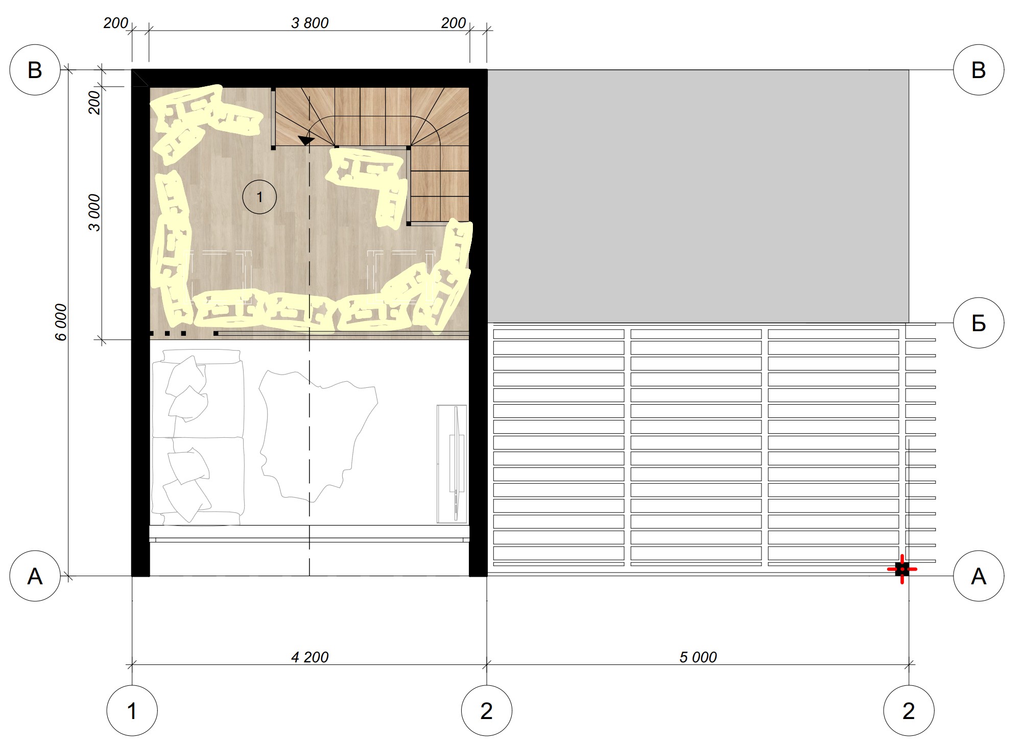 | Dimensiones | 9,2 m × 6,0 m (casa) + 5,0 m × 3,0 m (terraza) |